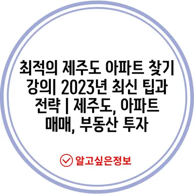 최적의 제주도 아파트 찾기 강의| 2023년 최신 팁과 전략 | 제주도, 아파트 매매, 부동산 투자