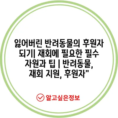 잃어버린 반려동물의 후원자 되기| 재회에 필요한 필수 자원과 팁 | 반려동물, 재회 지원, 후원자”
